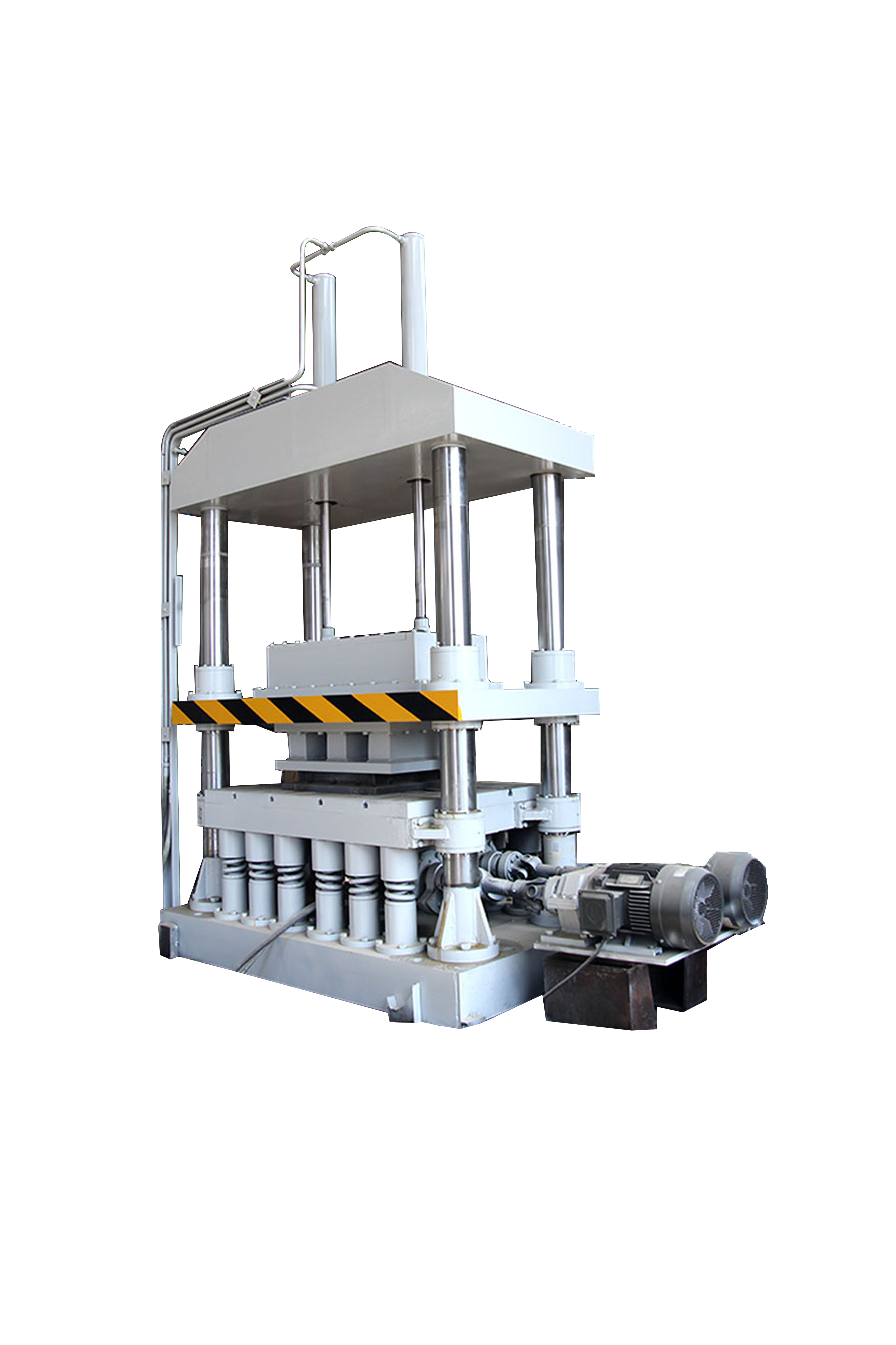 液壓激振合力成型機(jī),是在振動(dòng)成型原理的基礎(chǔ)上,吸收了振動(dòng)成型機(jī)、油壓機(jī)、摩擦壓力機(jī)等各種同類(lèi)機(jī)械的優(yōu)點(diǎn),結(jié)合我廠新專(zhuān)利產(chǎn)品調(diào)頻調(diào)幅型壓機(jī)經(jīng)過(guò)改進(jìn)創(chuàng)新設(shè)計(jì)而成的。是一種集慣性振動(dòng)、電液控制加壓、半干法壓制成型的先進(jìn)設(shè)備。壓制面積較大薄件制品和厚件制品是本系列機(jī)型的特長(zhǎng)。